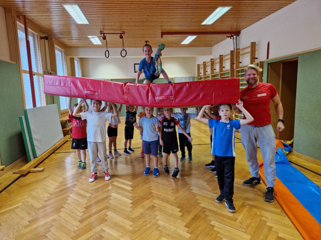 Hopsi Hopper 2025/26 Oktober 22, 2025 H P Auch heuer dürfen sich die Kinder über spannende Turnstunden mit Thomas vom ASKÖ Stockerau freuen. Immer mit dabei das Maskottchen Hopsi Hopper!
