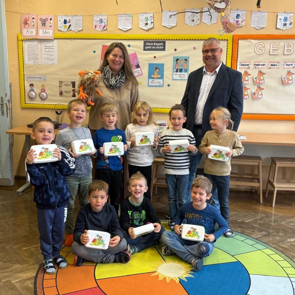 Am 09.10.2025 bekamen die Kinder der ersten Schulstufe neue Jausenboxen für einen umweltfreundlichen Schulstart.